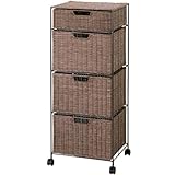 4段 ラタン ハイチェスト 籐 スチール脚 キャスター付き 「ブロウ」 ラッカー塗装 ブラウン色